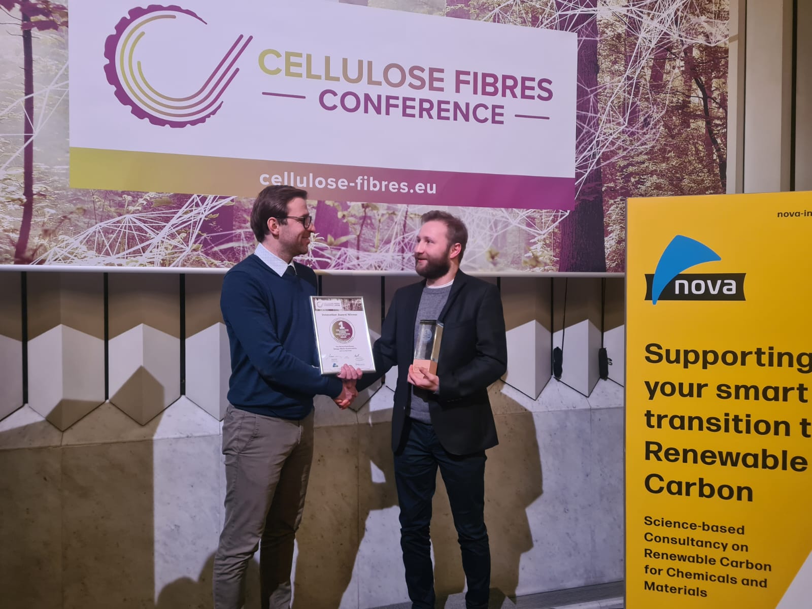 Das Nova-Institut für Ökologie und Innovation vergab im Rahmen der „International Conference on Cellulose Fibres 2024“ in Köln den ersten Platz des Innovationspreises an die Projektpartner des EU-geförderten Projektes HEREWEAR. Vorgestellt wurde ein Kleid aus Cellulosefasern, das vollständig aus Strohzellstoff hergestellt worden ist.