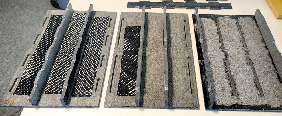Carbonfasern in Form von technischem Gewebe verstärken die Seitenwände der Wandelemente. Sie nehmen Zugkräfte auf und sollen, analog zu Verstärkungsstahl in Beton, den Baustoff stabilisieren. Die verwendeten Carbonfasern sind biobasiert, hergestellt auf der Basis von Biomasse. Lignin-basierte Carbonfasern, wie sie an den DITF Denkendorf seit langem technisch optimiert werden, sind für diese Anwendung besonders geeignet: Sie sind durch niedrige Rohstoffkosten günstig und haben eine hohe Kohlenstoffausbeute. Außerdem sind sie nicht, wie Verstärkungsstahl, anfällig für Oxidation und dadurch wesentlich länger haltbar. Wenngleich Carbonfasern in der Herstellung energieintensiver sind als Stahl, wie er in Stahlbeton verwendet wird, so wird doch nur eine geringe Menge für den Einsatz im Baustoff benötigt. Dadurch ist die Energie- und CO2-Bilanz erheblich besser als für Stahlbeton. Durch die Verwendung von Solarwärme und Biomasse zur Herstellung der Carbonfasern und die Verwitterung der Steinstäube wird die CO2-Bilanz des neuen Baumaterials insgesamt sogar negativ, wodurch CO2-negatives Bauen von Gebäuden möglich wird.