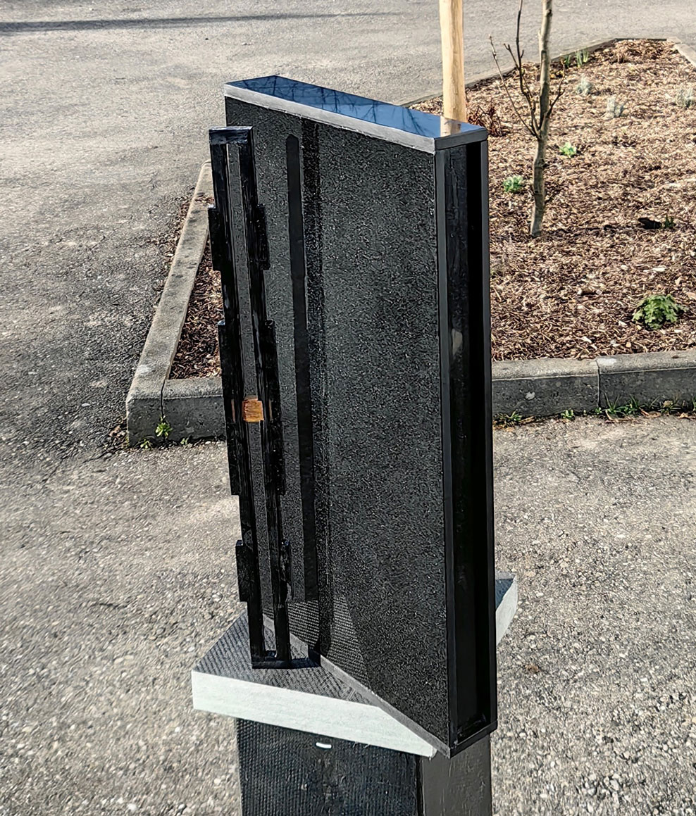 Zwei Gesteinsplatten aus Naturstein bilden die Sichtwände des Wandelements. Durch die mechanische Bearbeitung des Materials, dem Zusägen in Gesteinstrennmaschinen, fallen nennenswerte Mengen an Gesteinsstaub an. Dieser ist durch seine große spezifische Oberfläche sehr reaktionsfreudig. Durch Silikatverwitterung des Gesteinsstaubs wird einen große Menge CO2 aus der Atmosphäre dauerhaft gebunden.