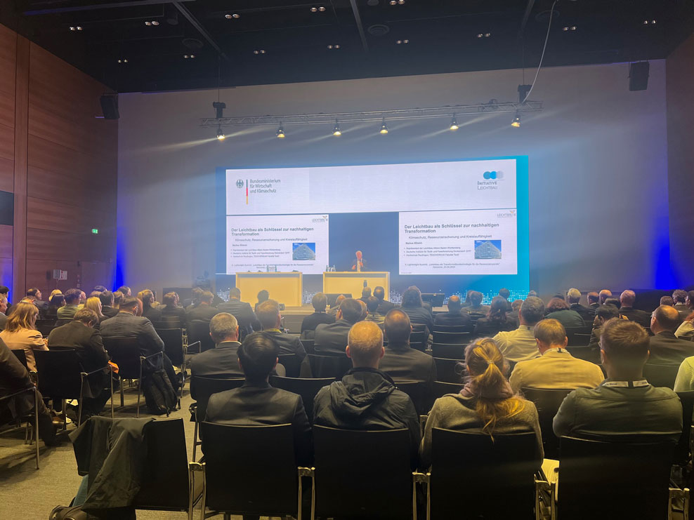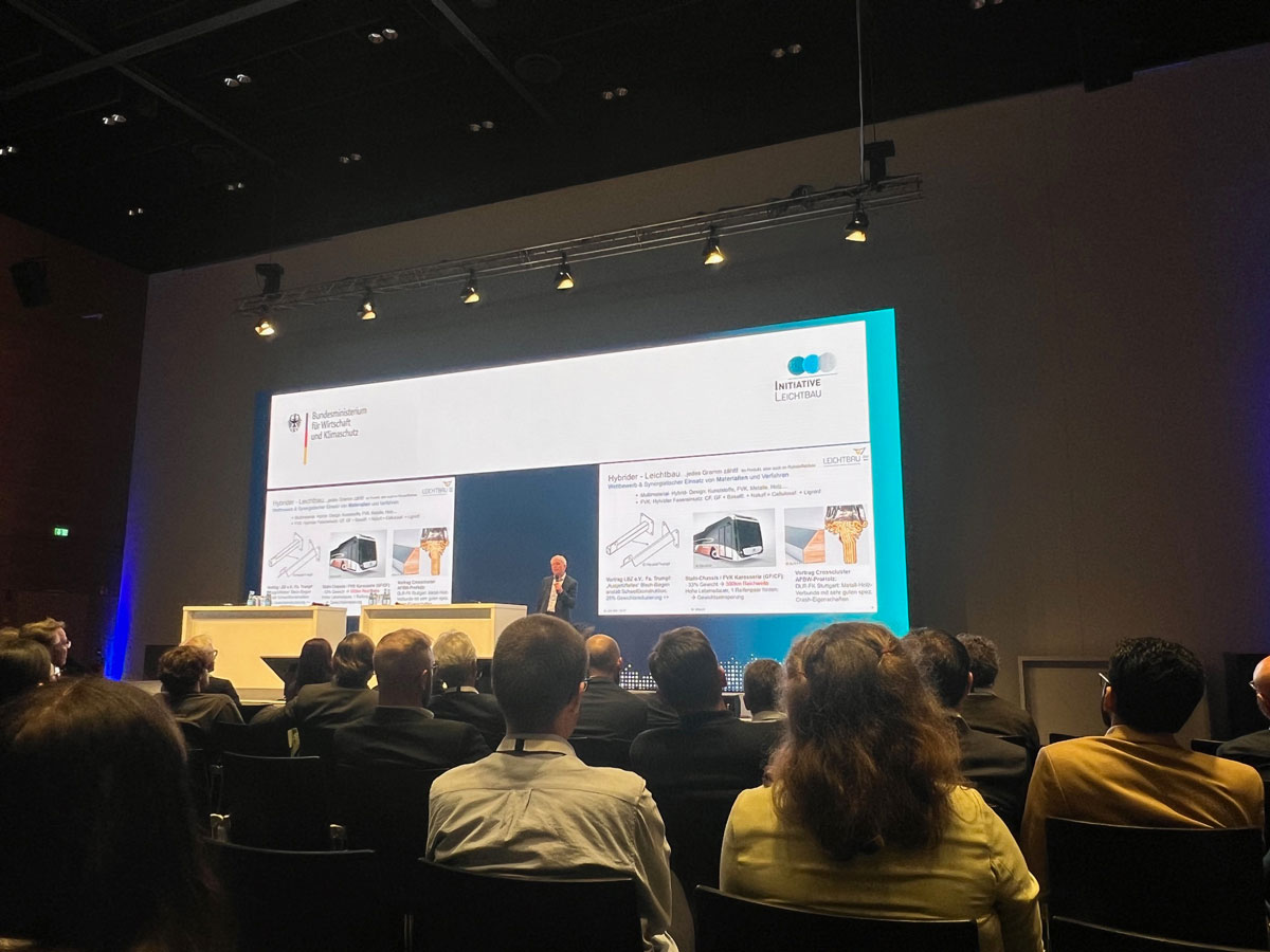 Am Nachmittag des 23.04.2024 folgten die beiden gemeinsam mit ca. 170 weiteren Teilnehmerinnen und Teilnehmern der Einladung des BMWK und nahmen am 5. Lightweighting Summit im Rahmen der HANNOVER MESSE teil. Rund um das Thema „Leichtbau als Transformationstechnologie für die Ressourcenwende“ gab es ein spannendes Programm aus Keynotes und Vorträgen, einer Panel-Diskussion sowie Pitches innovativer Forschungsvorhaben aus dem Leichtbau.
