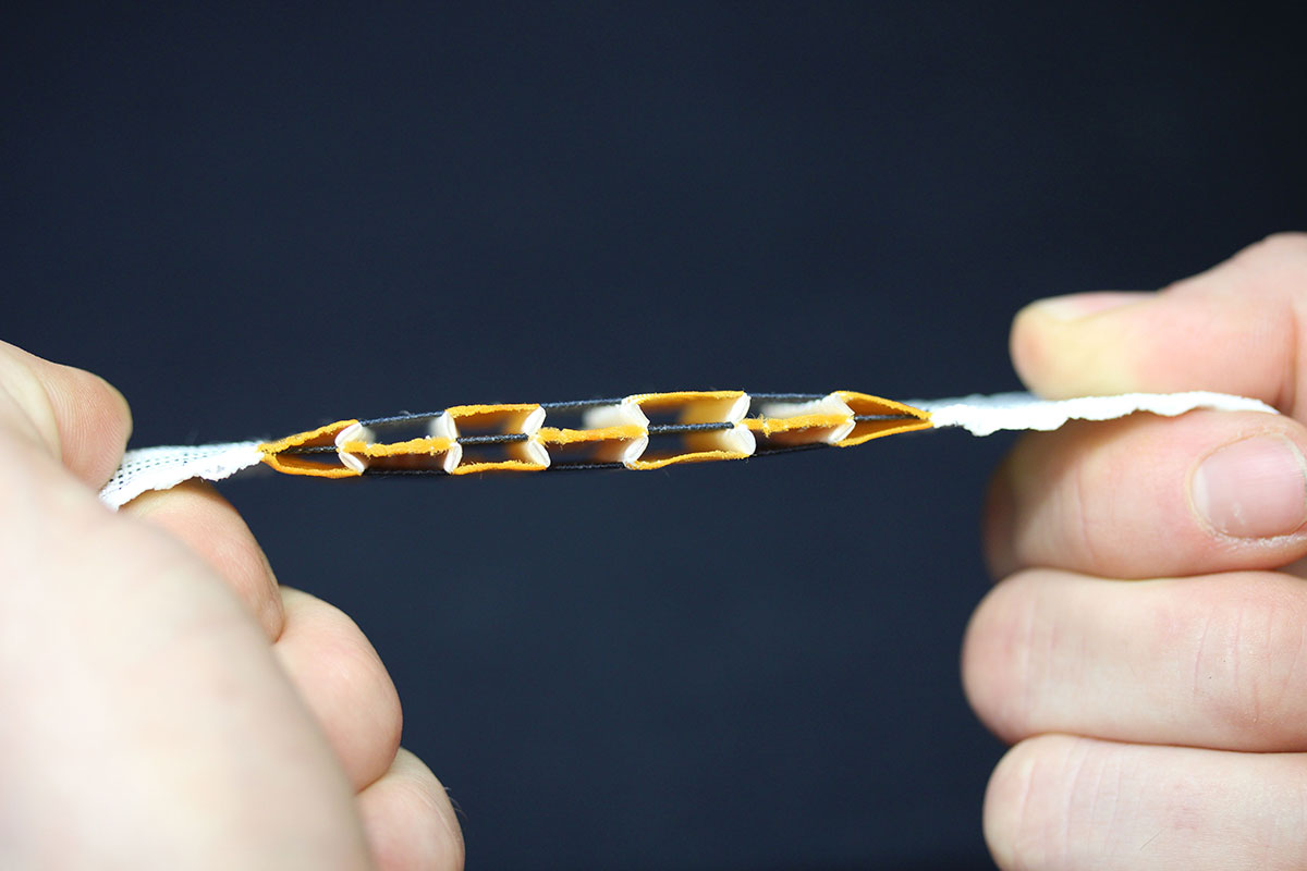 Zieht man an im Alltag üblichen Materialien, so dehnen oder strecken sich diese in Zugrichtung und werden im Querschnitt schmaler. Diese Eigenschaft können wir auch bei flächigen Textilien beobachten. Auxetische Strukturen verhalten sich hier anders. Sie haben die verblüffende Eigenschaft, sich unter Zugbelastung nicht zu verändern oder sogar ihre Breite oder Dicke zu vergrößern. Diese Eigenschaften sind zum Beispiel bei Schutztextilien oder textilen Filtermedien von Vorteil. Die DITF erforschen auxetische Gewebe für verschiedene Anwendungen.