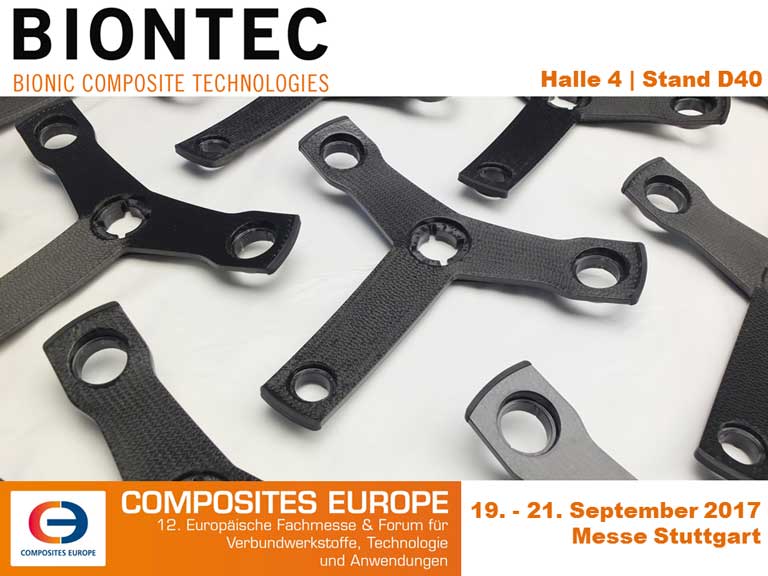Vom 19. bis 21. September 2017 findet die Composites Europe, die europäische Fachmesse für Verbundwerkstoffe, Technologie und Anwendungen, in Stuttgart statt. BIONTEC wird sich dieses Jahr zum ersten Mal auf der Composites Europe präsentieren.