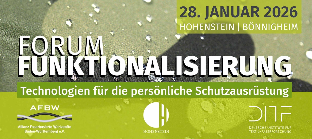 Die Veranstaltung wird gemeinsam von der Allianz Faserbasierte Werkstoffe BaWü e.V. (AFBW), Hohenstein und den Deutschen Instituten für Textil– und Faserforschung (DITF) Denkendorf ausgerichtet und findet am 28.01.2026 von 9:00 bis ca. 16:30 Uhr bei Hohenstein statt.