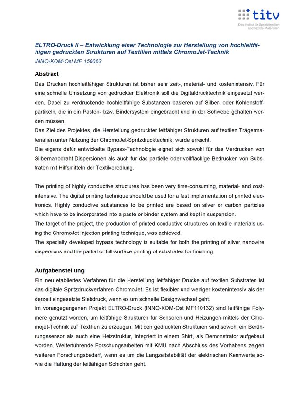 Entwicklung einer Technologie zur Herstellung von hochleitfähigen gedruckten Strukturen auf Textilien mittels ChromoJet-Technik
